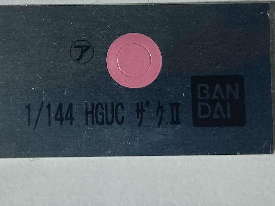 このザクですが手をリバイヴ版、モノアイを百均のデコレーションシールに変えています。