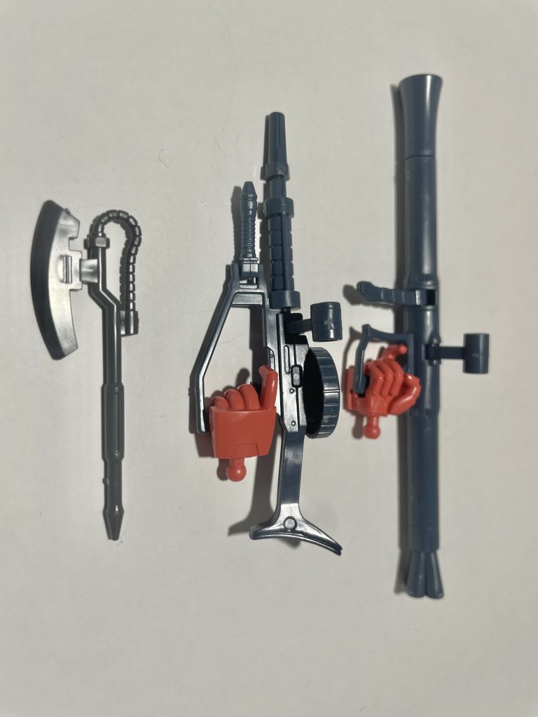 武器はザク・バズーカ、ザク・マシンガン、ヒートホークで左右それぞれ武器の持ち手があります。